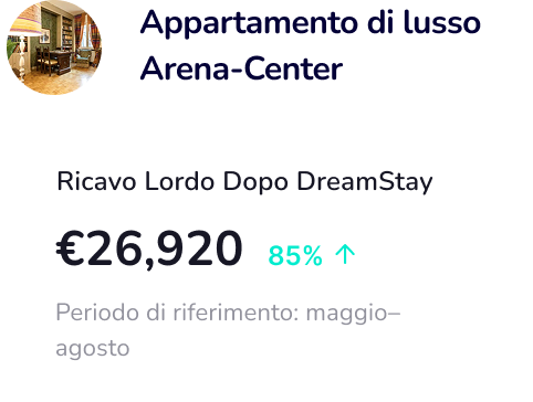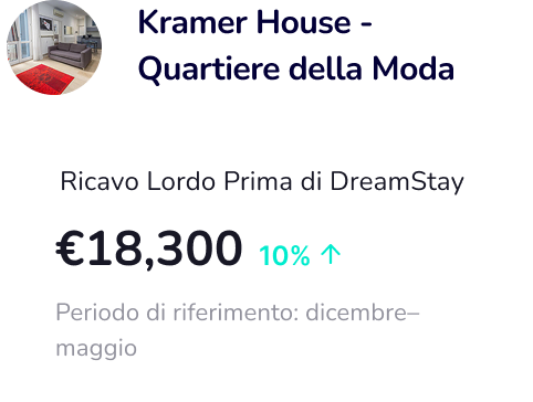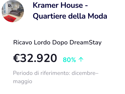 Con DreamStay, puoi guadagnare fino al 60% in più rispetto alla media dei gestori immobiliari, grazie al nostro approccio professionale e strategico alla gestione degli affitti a breve termine.